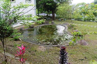 屋外闢有蓮花池、石桌及石椅數十套,可供烤肉、野餐使用。