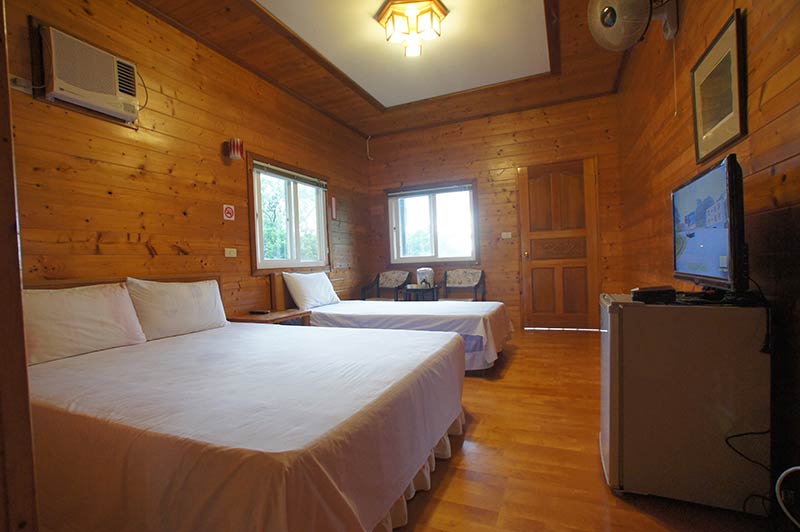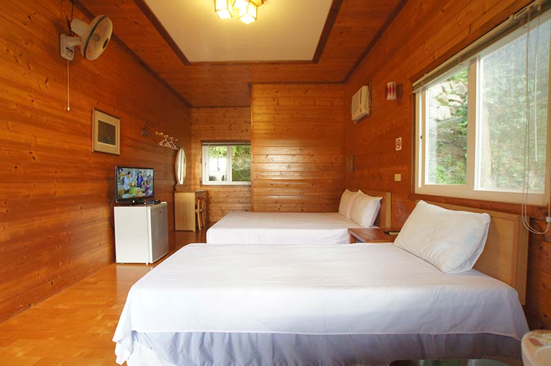 含一組雙人床及一套衛浴設備,另加一組單人床。