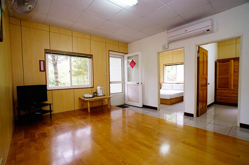 含兩間雙人房、一間和室客廳(可宿四人) ,並附一套衛浴設備,供八人住宿。